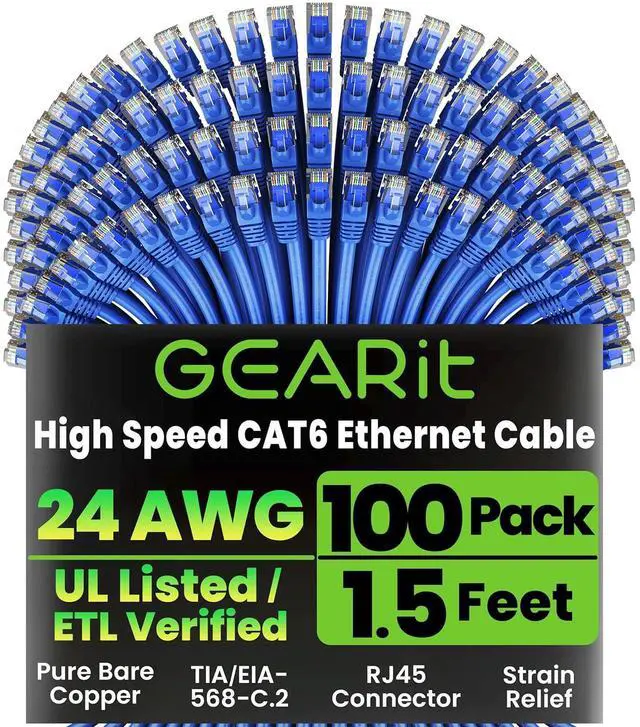 GearIT Cat 6 Ethernet Cable 1.5 ft 18-Inch (100-Pack) - Cat6 Patch Cable, Cat 6 Patch Cable, Cat6 Cable, Cat 6 Cable, Cat6 Ethernet Cable, Network Cable, Internet Cable - Blue 1.5 Feet
