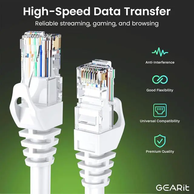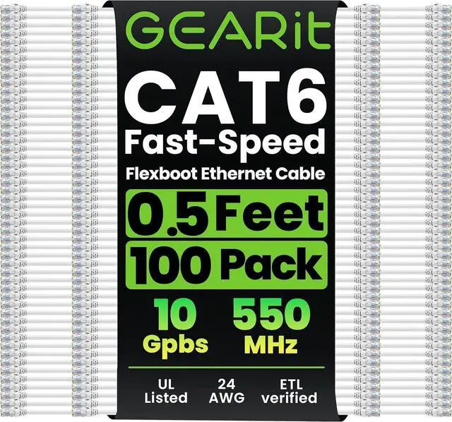 GearIT 100-Pack Cat6 Patch Cable 0.5 Foot / 6 Inches Cat 6 Ethernet Cable Snagless Flexible Soft Tab - Preimum Series - White