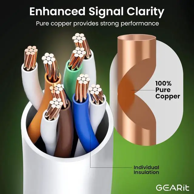 • UTP 24AWG stranded conductors for flexibility, twisted in pairs, 50 micron gold-plated contacts for high-speed data transfer and corrosion resistance, as well as molded, snag-less strain relief boots for long lasting, durable connections
