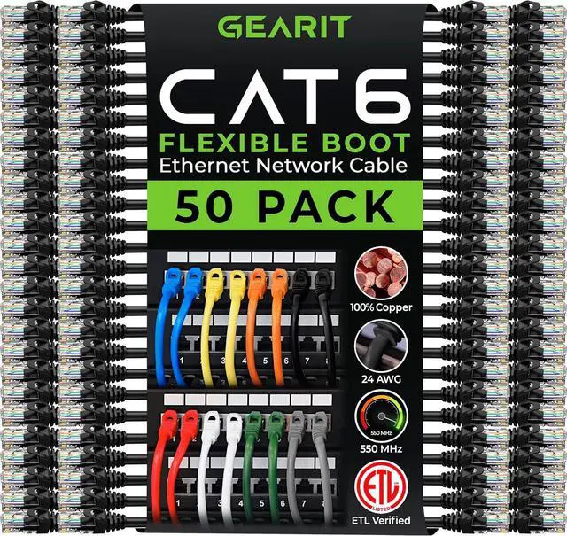 GearIT Cat6 Patch Cable Cat 6 Ethernet Cable Snagless Flexible Soft Tab - Preimum Series, Black (0.5 Feet (50-Pack), Black)