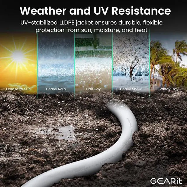 Rugged Outdoor Network Cable. Is ideal for direct ground burial without special cable conduits. Its protective solid jacket is resistant to water, UV rays, snow, and dirt. Perfect for connecting any room in your home or business.