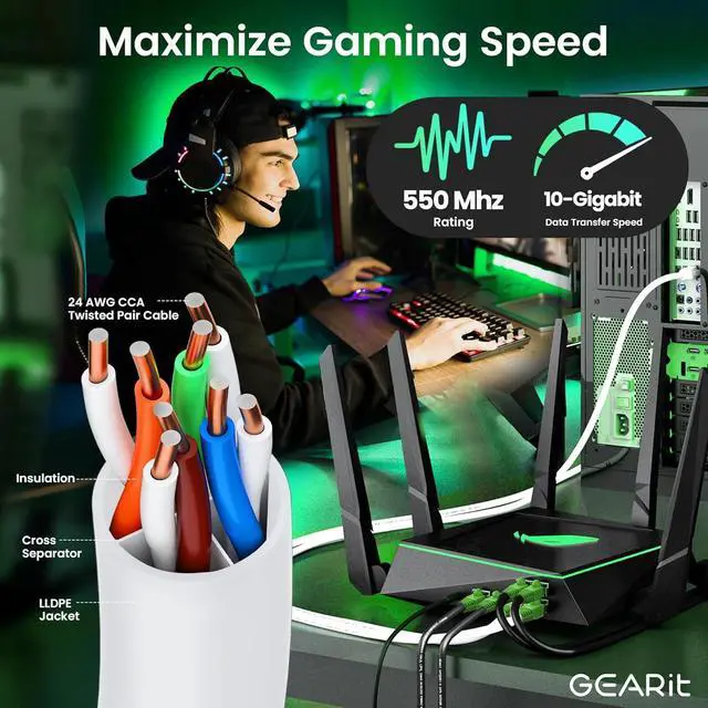 • Perfect for all types of network cabling. This gaming Ethernet cable is soft and flexible, easily fitting around corners and bends without fear of breaking the inner conductor. It has four twisted pairs of