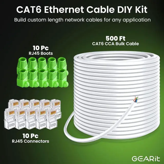 • Elevate your network setup with our Outdoor Network Do-It-Yourself (DIY) Kit, featuring a generous 500ft Cat 6 Ethernet (Copper Aluminum Cable), along with 10 RJ45 connectors and 10 protective boots. This comprehensive kit provides all the essentials to tailor your cable lengths up to an impressive 500 feet. (Please note that tools are NOT included)
