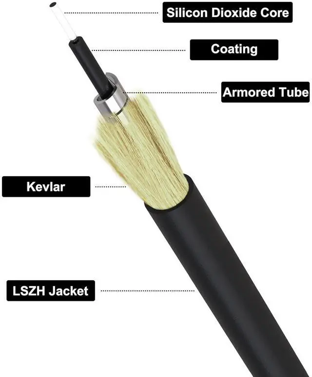 Durable SheathingCrafted with a durable armored exterior, this SC/APC armored fiber cable guarantees exceptional protection and reliability. Designed for outdoor and demanding conditions, it ensures cable reliability across various situations, making it an ideal choice for extending secure and robust connectivity.