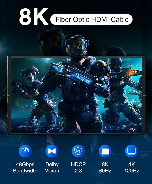 8K FIBER OPTIC HDMI FOR GAMERS: Its latest game mode supports Variable Refresh Rate (VRR) - when the scene is switched, the refresh rate will change accordingly to obtain a smoother, lag-free and more detailed picture. Supports eARC, HDCP 2.3 & 2.2, QMS, QFT, ALLM, DTS Master, DTS:X, Dolby Atmos, Dolby Vision