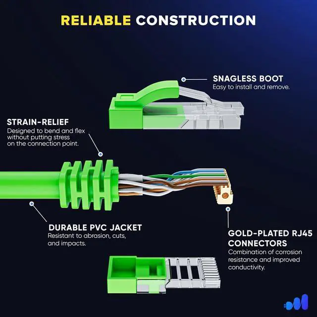 • UTP (Unshielded Twisted Pair) 4 pairs strand with separator for reduced crosstalk, molded snagless rubber boot and strain relief