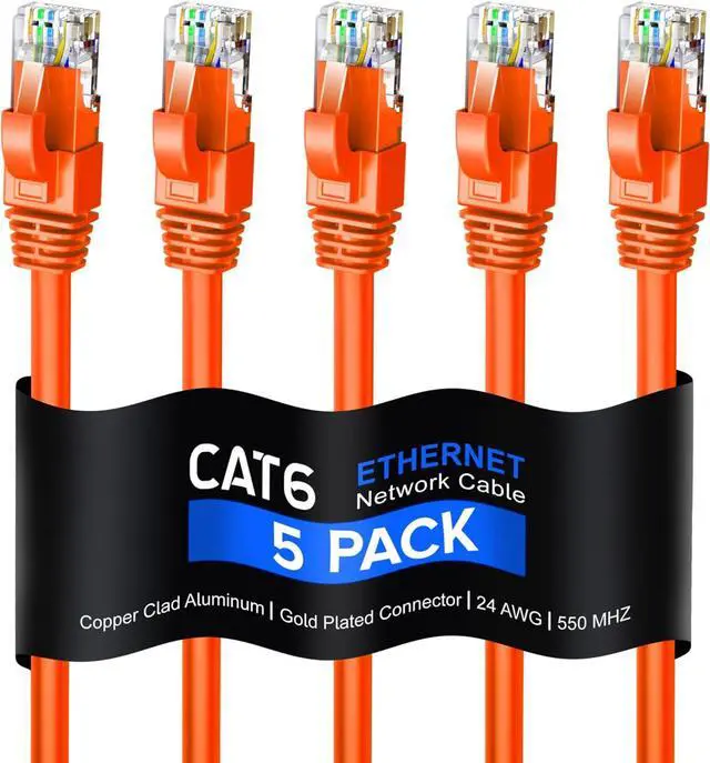 Maximm Cat 6 Ethernet Cable 75 ft (5-Pack) - High-Speed LAN Cable, Internet Cable, Patch Cable, and Network Cable - UTP, 10Gbps, 550MHz Ethernet Cord - Orange