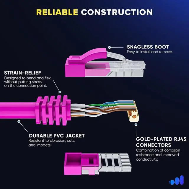 Maximm Cat 6 Ethernet Cable 8 ft (2-Pack) - High-Speed LAN Cable, Internet Cable, Patch Cable, and Network Cable - UTP, 10Gbps, 550MHz Ethernet Cord - Pink
