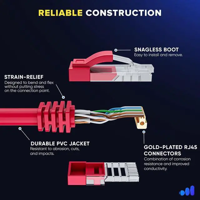 • UTP (Unshielded Twisted Pair) 4 pairs strand with separator for reduced crosstalk, molded snagless rubber boot and strain relief