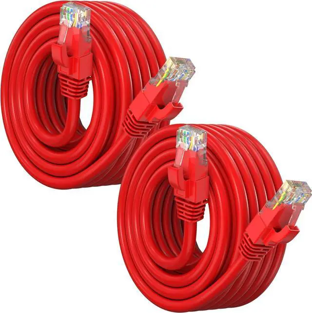 Maximm Cat 6 Ethernet Cable 25 ft (2-Pack) - High-Speed LAN Cable, Internet Cable, Patch Cable, and Network Cable - UTP, 10Gbps, 550MHz Ethernet Cord - Red