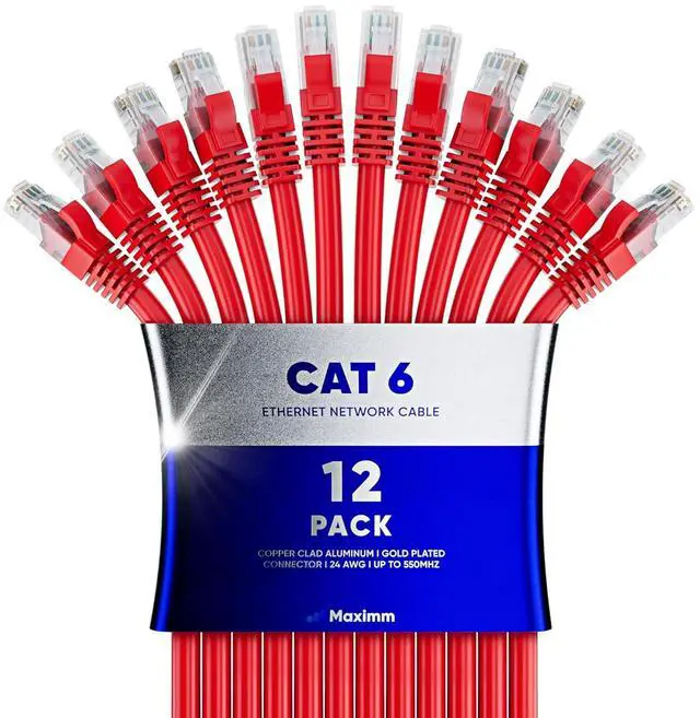 Maximm Cat 6 Ethernet Cable 1.5 ft 12 Pack - High-Speed LAN Cable, Internet Cable, Patch Cable, and Network Cable - UTP, 10Gbps, 550MHz Ethernet Cord - Red