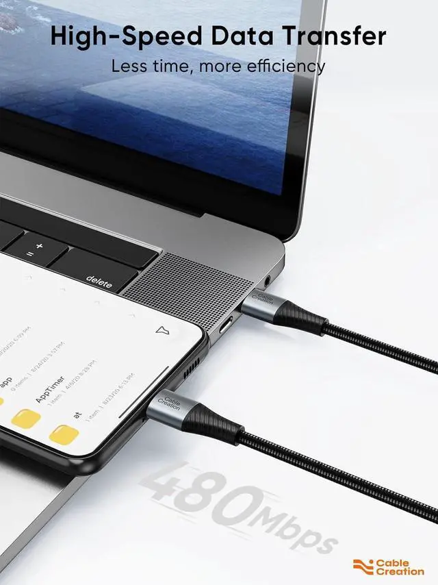 60W Super Speed Charging & Data Sync: CableCreation 0.8FT usbc charge cable supports fast charging up to 3A and data transfer speeds up to 480Mbps (40-60 MB/s). NOTE: This cord will NOT provide you with fast charging alone, you will need a power block rated for fast charging and your phone must support fast charging at the same time