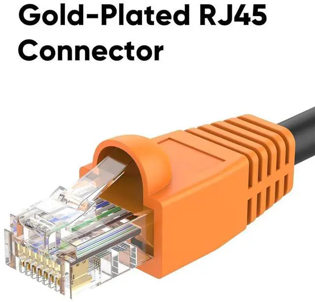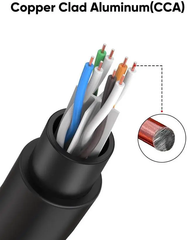Copper Clad Aluminum Cable, RJ45 Connector with Bubble Sleeve: CableCreation Outdoor Ethernet Cables offer Cat6 speeds up to 10 Gbps and 550 MHz at an affordable price, with gold-plated RJ45 connectors wrapped in a flexible PVC "bubble sleeve" cover, and the cable features four pairs of high-quality copper clad aluminum (CCA) stranded conductors for consistent, clear connections at any distance