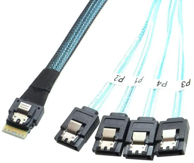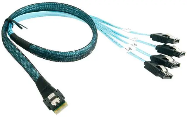 Ultraport SlimSAS 4i 38Pos Cable Assembly. Slim SAS 4i Straight to SATA 7pin. Length: 50cm. Connector 1: Slim SAS 4i 38pin. Connector 2: SATA 7pin. Applications for Servers,Data Storage,Workstation. meet PCIe Gen3 and SAS4.0 specification.