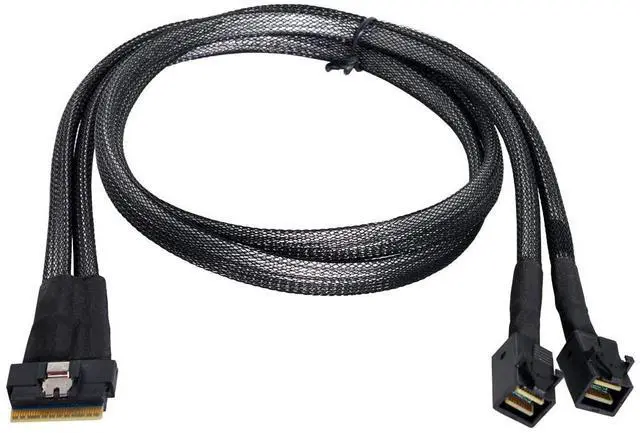 Features and Benefits: 1.Smaller size connector and cable saves device space. 2.Provide four channels signal transmission as per industry standard. 3.Data speed: 24Gbps for SAS and 8GT/s for PCIe per channel. 4.Meet SAS4.0, Ultraport SlimSAS SFF-8654 specification.