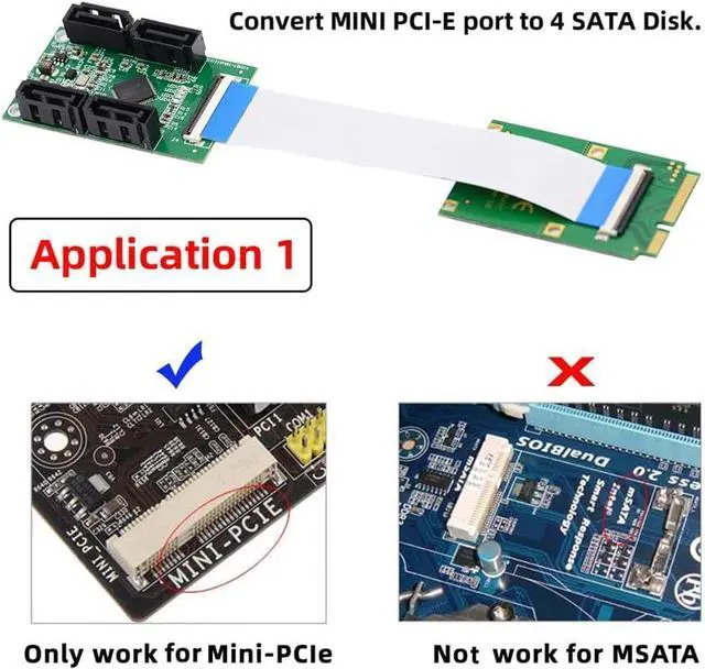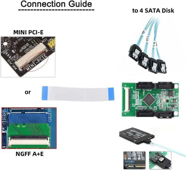 Compatible with Mini PCI-E or NGFF A+E Key Host: Connects up to 4 SATA target disks.