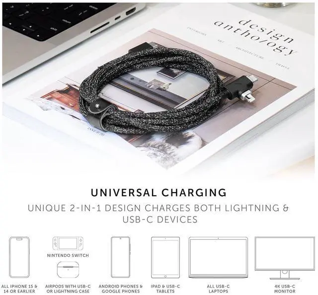 2-IN-1 CHARGING: The only cable you'll need. Sync & charge all your Lightning & USB-C devices with just one powerful cable. Compatible with all Lightning devices including iPads, iPhone 14 or earlier, and AirPods, and all USB-C devices including iPhone Air, 17, 17 Pro, 17 Pro Max, iPhone 16, 16 Plus, 16 Pro, 16 Pro Max, iPhone 15, 15 Plus, 15 Pro, 15 Pro Max, MacBook Pro 14/16 M4, MacBook Air 15" M3 Ultra, MacBook Pro 2017-2025, MacBook Air 2018-2025, iPad Pro (2018 and later), iPad Air 4 (2020), iPad Air 5 (2022), iPad mini 6 (2021); Samsung Galaxy S25/ S25+/ S25 Ultra; Samsung Galaxy Z Flip 7 / Fold 7; Google Pixel 10 / 10 Pro / 10 Pro XL; Microsoft Surface Pro 11, Surface Go 4 and more