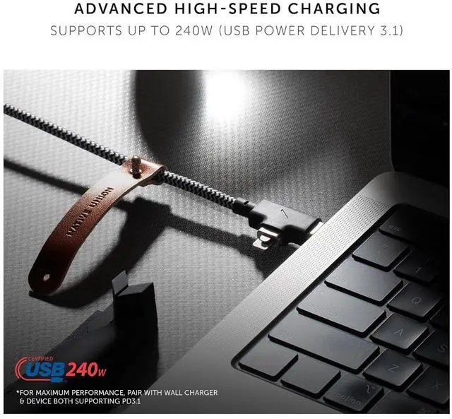HIGH-SPEED CHARGING UP TO 240W: Charge faster than ever with USB Power Delivery 3.1 support up to 240W. Even supports full speed charging for your MacBook Pro (16-inch, 2021), Workstation, 4K USB-C monitor & most high-powered devices. For maximum performance, pair Belt Cable Duo Pro with a wall charger & device both supporting PD 3.4