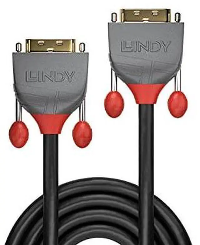 From the Lines cable connectivity concept developed by Lindy, Anthra Line DVI-D Dual Link cables are the professional choice for high resolutions connections in commercial AV and IT installations. Anthra Line DVI-D Dual Link are premium cables that feature triple shielded construction with 28AWG tinned copper conductors for performance and corrosion resistance. High quality 24K gold plated contacts and connectors maintain optimal signal integrity and maximum reliability. The tough PVC housing incorporates an integrated finger grip for easy installation. Large thumb screws allow the connector to be tightened into place without the need for a screwdriver and a flexible strain relief prolongs cable life. Anthra Line DVI-D Dual Link cables support resolutions up to 2560x1600@60Hz including HDTV resolutions up to 1080p. Anthra Line DVI-D Dual Link cables are available in lengths of 0.5m to 20m.