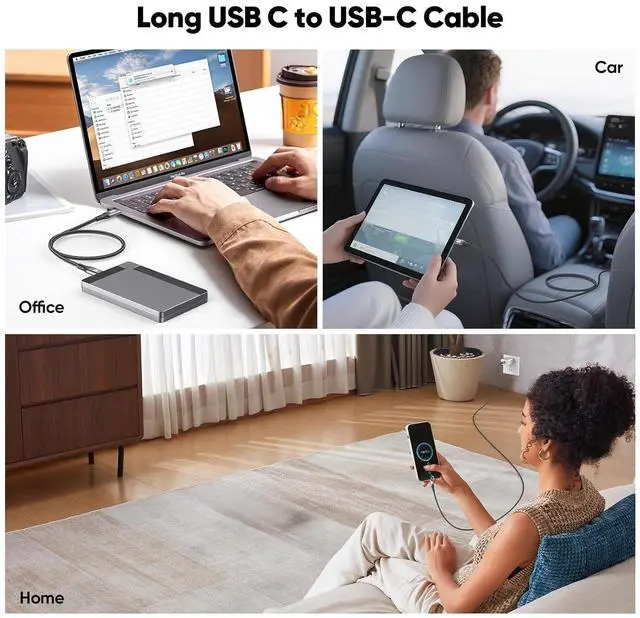 100W FAST CHARGING FOR LAPTOPS & TABLETS, EVEN OUTDOORSDelivers up to 100W PD, ideal for MacBook and USBC laptops/tablets; the extralong 20FT length lets you comfortably use your device on the sofa, in bed or outside while connected to a wall charger or portable power bank without sacrificing charging speed.