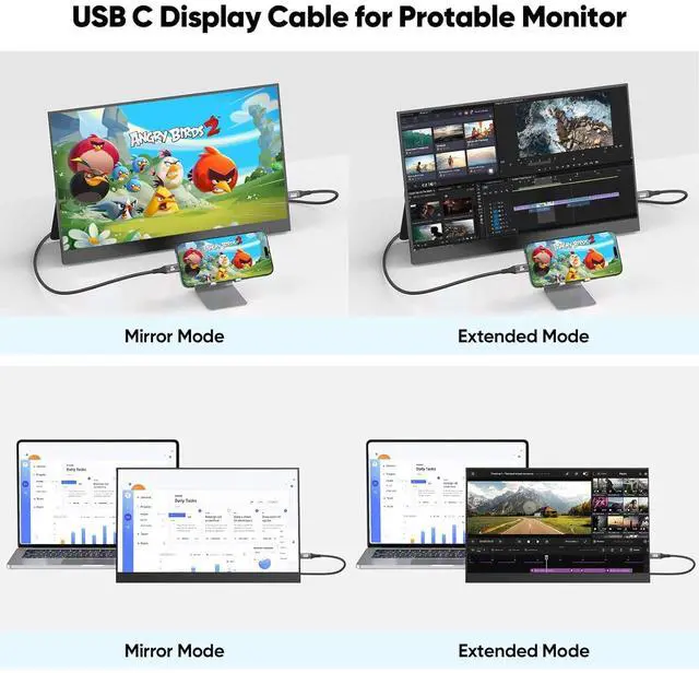 STABLE 4K@60HZ VIDEO AT LONG DISTANCEDesigned for fullfunction USBC DP Alt Mode, this cable maintains crisp 4K@60Hz video output over 20FT, this USB C Display Cable giving you flickerfree 4K playback and presentations when connecting your laptop or tablet to monitors, TVs or projectors in longdistance setups.