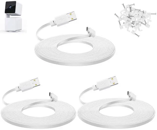 Smays 20 ft Cable for WYZE Cam Pan v3 Camera, Long Micro USB Flat Power Cord, 90 Degree 3-Pack, White