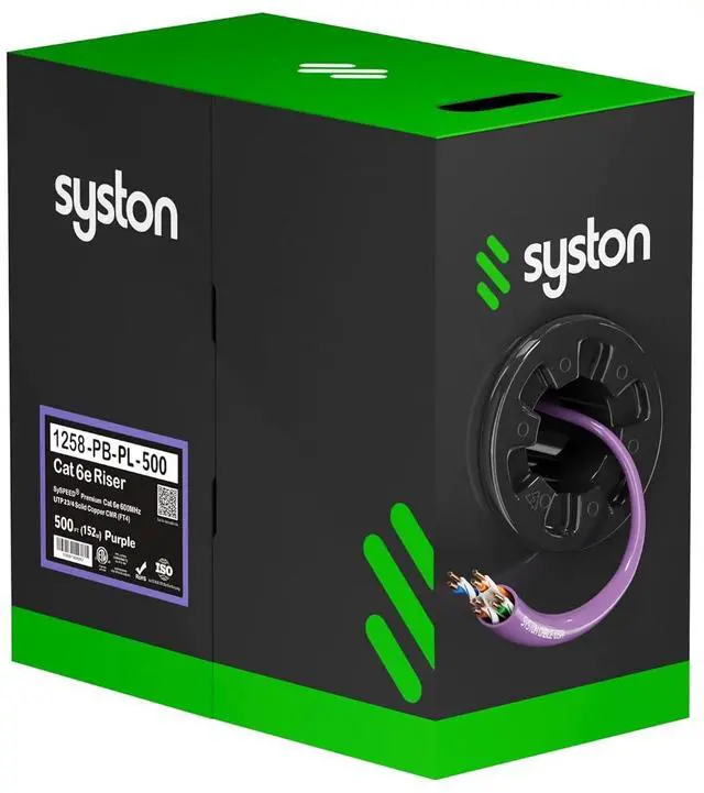 SYSTON CAT 6E Ethernet Network LAN Cable Bulk Raw - 600MHz 23AWG UTP Solid Bare Copper Wire for Indoor/Outdoor IP PoE Applications, FT4/CMR/Riser-Rated ETL Listed RoHS Without RJ45 End - Purple, 152m