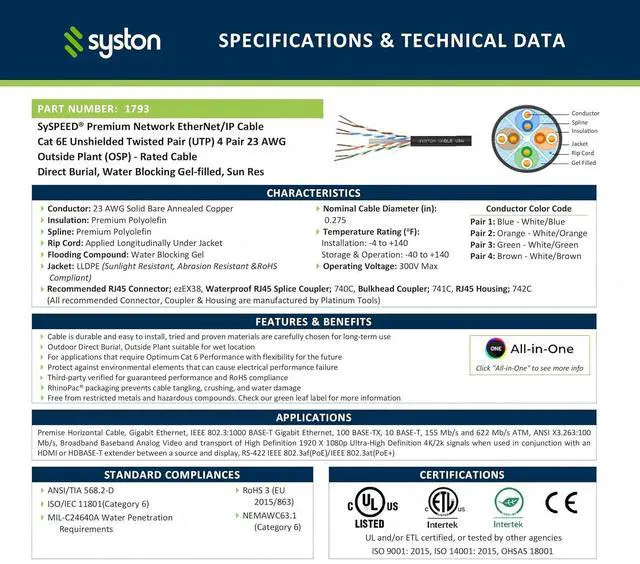 Designed for Outdoor Use: Our cable is designed with direct burial material. Engineered to withstand moist environments and plant root exposure, making it ideal for direct burial applications.