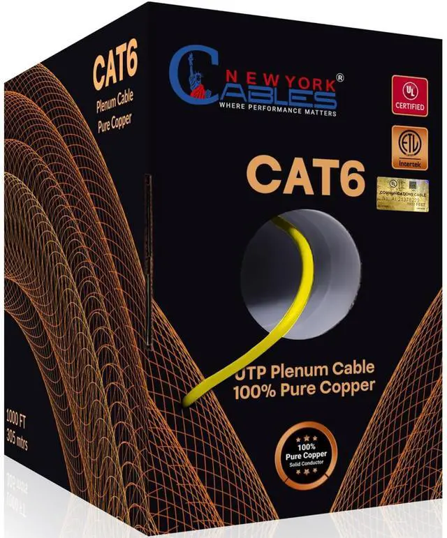 NewYork Cables Cat6 Plenum | Cat 6 Ethernet Cable 1000ft (CMP) UL- ETL Certified 100% Pure Copper Cat 6 Cable 1000ft (Yellow, 1000 Feet)