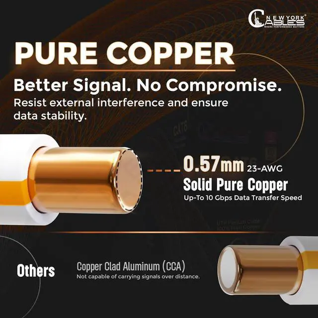 • % : Our Cat6 Plenum Cable 1000ft features 23AWG solid bare copper conductors, ensuring superior conductivity and high-speed data transmission. Tested for bandwidths up to 550MHz, it's perfect for 1 Gigabit and 10 Gigabit speed in demanding network environments. Meets or exceeds ANSI/TIA 568.2-D standards.
