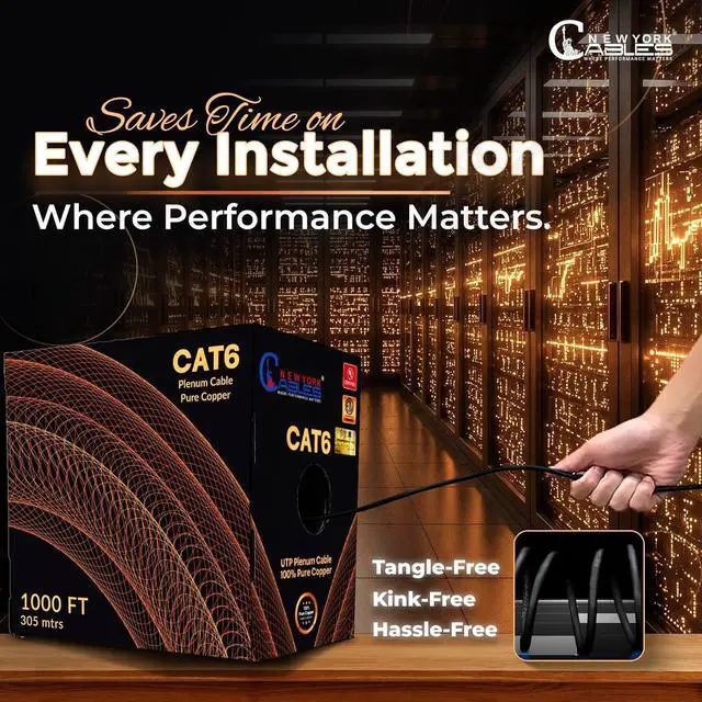 -, - ?: Cat6 1000ft plenum cable comes in a tangle-free, easy-pull box with sequential foot markings for accurate measurements. A spline separator ensures smooth, kink-free dispensing, making it the perfect bulk ethernet cable for efficient, professional-grade installations.