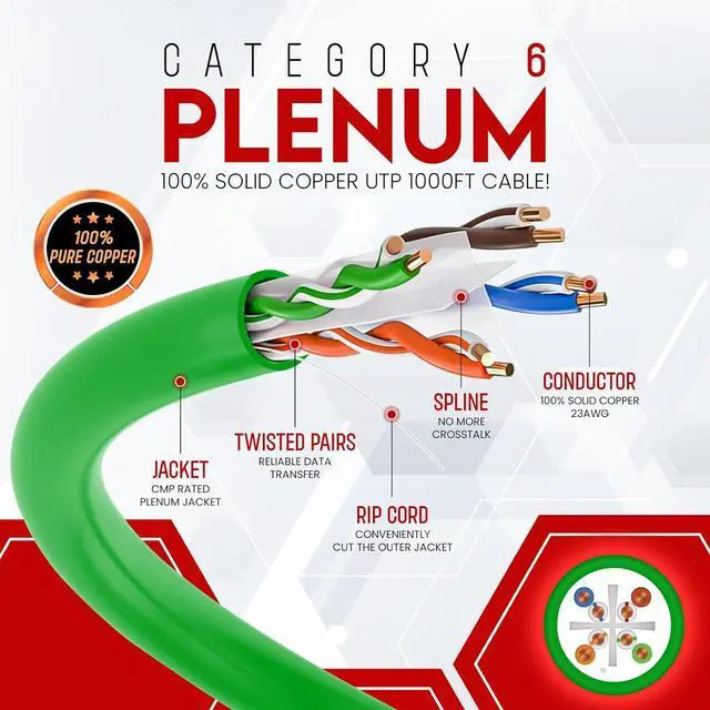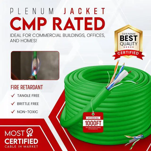 • ? : Our cat 6 1000ft solid cable features fire retardant, UV and sunlight resistant plenum-rated jackets are designed to meet rigorous fire safety test standards and are recommended to be used in plenum spaces which are usually above suspended/drop ceilings or below-raised floors