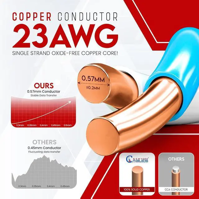 % : Our cat6 cable 1000ft, a pure copper cable provides top-notch speed and performance. The 23 AWG Cat6 (CMP) cable with 4 pairs (8C) is ideal for 10 Gigabit and tested bandwidth of up to 550 MHz