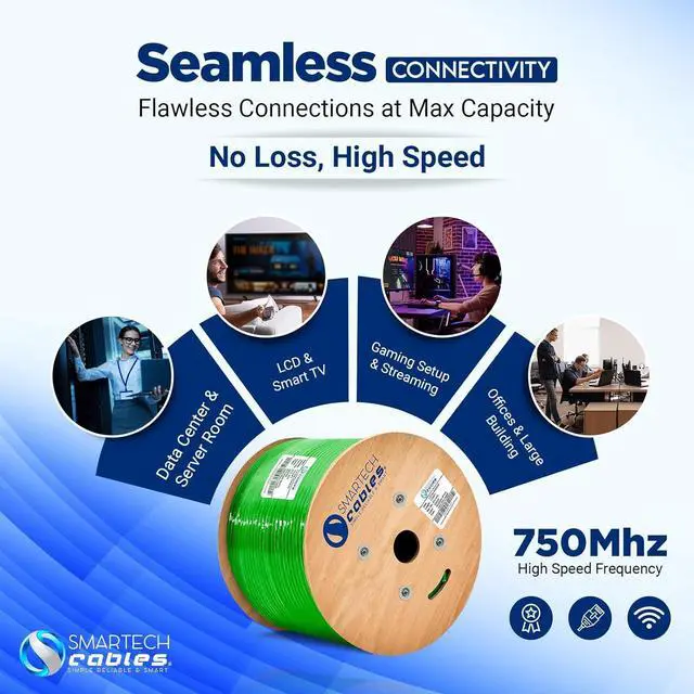 EASY INSTALLATION: Simplify your installation process with our cat 6a spool. The generous length offers flexibility for large-scale projects, eliminating the need for splicing or additional connectors. It comes neatly packaged, ready to be pulled and installed with ease.