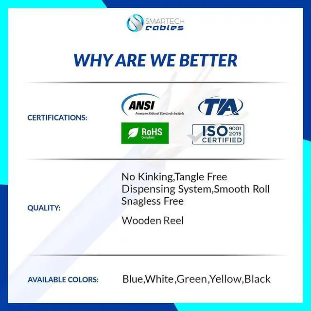 RELIABLE CONNECTIVITY WITH 100% PURE COPPER: Enjoy uninterrupted and reliable connections with our Cat6a cable 1000ft. Made from certified 100% solid pure copper, it provides exceptional conductivity and minimizes signal loss, ensuring a stable and consistent network connection.