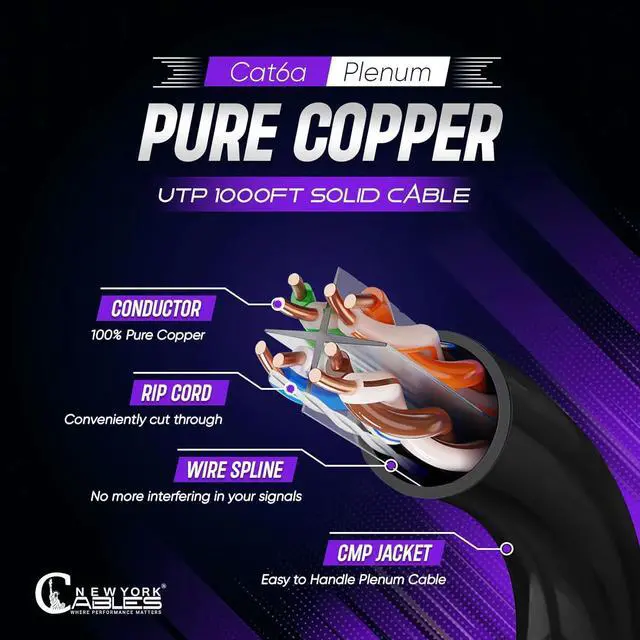 HIGH-SPEED PERFORMANCE: Experience lightning-fast networking and seamless gaming with our Cat6a ethernet cable. Our cat6a plenum 1000ft is Designed to support speeds up to 10GB, it ensures smooth data transfer and low latency for optimal performance.