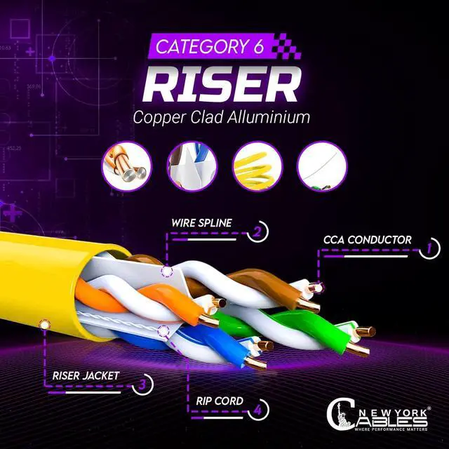 - : Engineered with 4 twisted pairs, this CAT 6 ethernet cable riser delivers 10Gbps speeds and reduced crosstalk. Perfect for routers, switches, gaming consoles, and more. This CAT 6 ethernet cable ensures smooth, consistent data transfer across all network devices, making it ideal for heavy streaming, large file transfers, VoIP calls, and cloud-based applications.