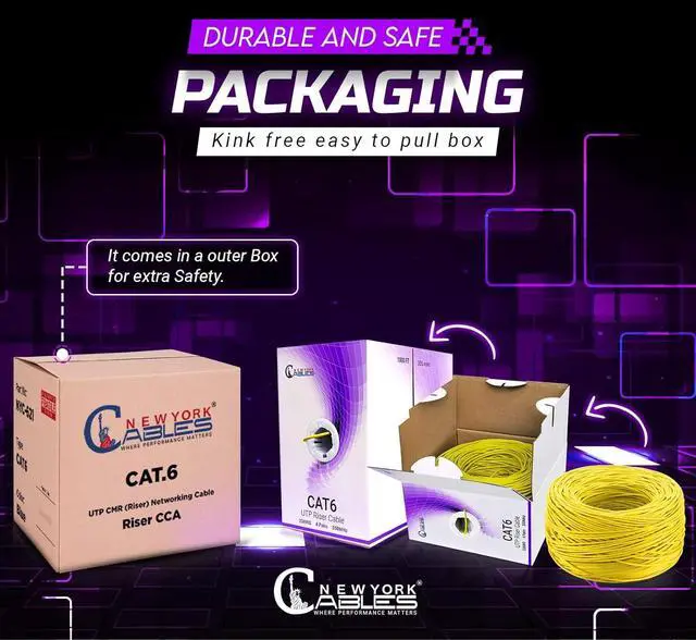 NewYork Cables | CAT6 Ethernet Cable 1000ft | Bulk Riser (CMR) 23AWG, UTP 4 Pairs, 550MHz 10Gbps High-Speed LAN Cable for Streaming, Gaming, Home, Office | Easy Pull Box | Yellow