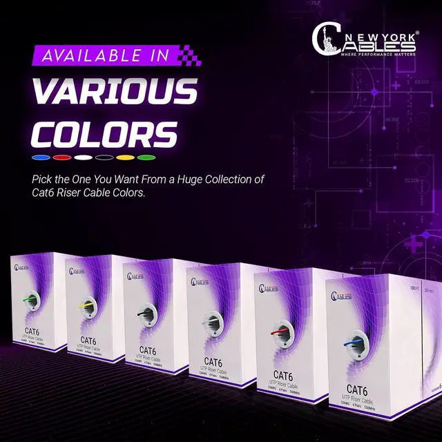 : Featuring a sturdy riser jacket, this 1000 ft CAT 6 cable is Fire-Safe Jacket and designed for vertical riser applications between floors. Built to protect internal conductors and maintain performance, this CAT6 riser cable offers long-term durability. Perfect choice for bulk CAT 6 ethernet cable 1000ft installations requiring both safety and strength.