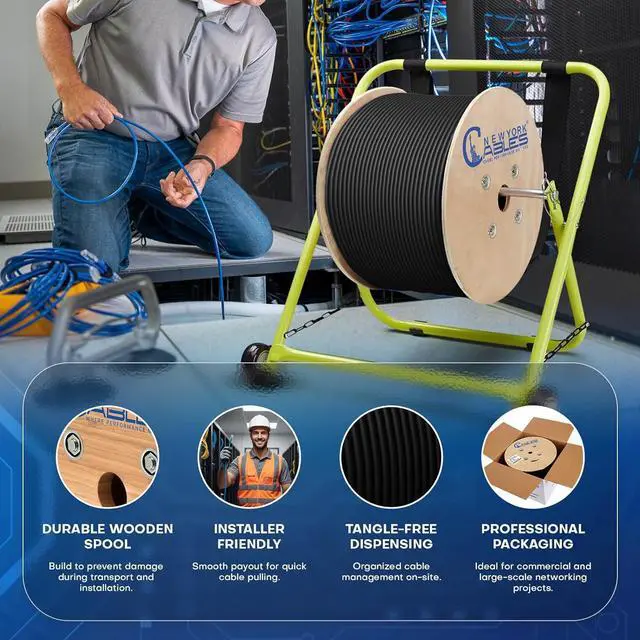 - : Supplied on a durable wooden reel, this Cat6a bulk cable ensures smooth, tangle-free pulling during large projects. Designed for professional efficiency, the spool format reduces waste and speeds up deployment in riser environments. As a reliable Cat6a bulk ethernet cable, it meets ANSI/TIA 568.2-D standards and complies with ISO/IES, RoHS, FCC, CSA, and ETL requirements.
