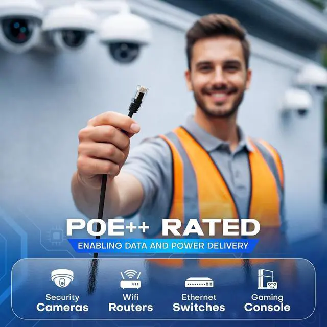 : Optimized for modern devices, this Cat6a 1000ft cable fully supports PoE, PoE+, and PoE++ (4PPoE), delivering up to 100W of power and data through a single run. Ideal for IP cameras, VoIP phones, wireless access points, and smart systems, this Cat6a cable 1000ft simplifies installations by eliminating extra power wiring. The balanced pair design helps maintain stable power delivery while reducing voltage drop over long distances.