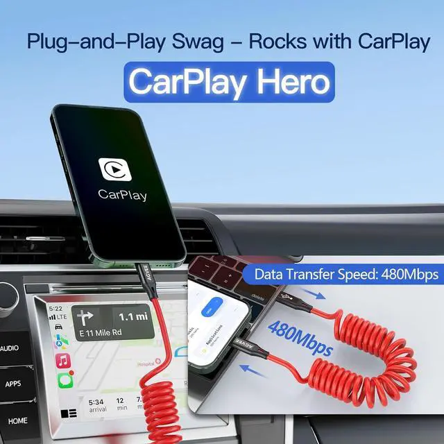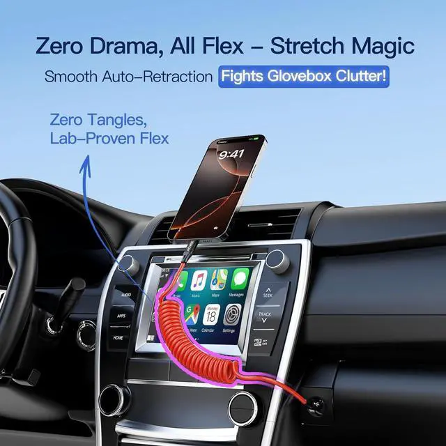 [Universal Compatibility + 24-Month Peace of Mind] Compatible with iPhone iPhone 15/16 series, CarPlay-optimized with anti-interference tech to banish "ghost disconnections"(USB-C Carplay port). Backed by a 24-month warranty and US-based support - if it ever fails, we'll rush a replacement, no forms needed. Pinky promise! Tired of CarPlay Ghost Disconnections? Snag This Anti-Tangle Hero
