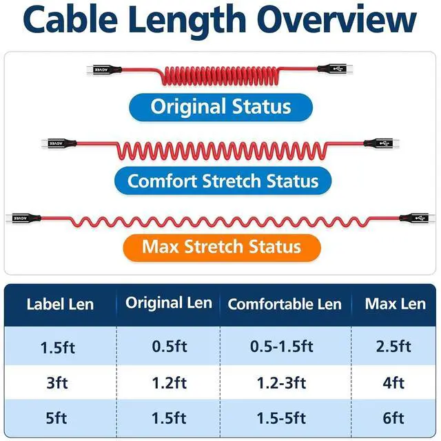 [Tame Your Car's Cable Jungle] No more wrestling with spaghetti cords! Our coiled design stretches from short to long, perfect for tight car spaces, then snaps back neatly like a slinky. Keep your cup holders free for coffee, not tangled chaos! Soft and elastic: No more wrestling with stiff, frozen-spaghetti-like cables in winter; Squishy as a pacifier, coils like a zen master.