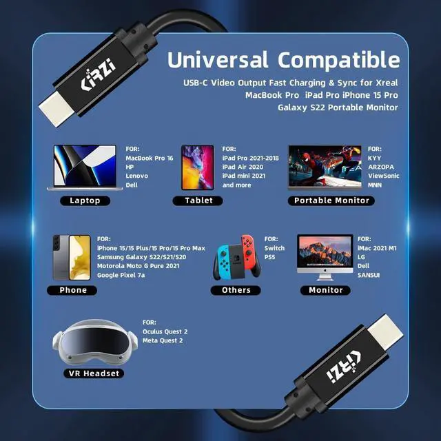 Wide Compatibility: Compatible with iPhone 16/15 series, Samsung Galaxy S25/S24, Note series, iPad Pro Series, MacBook Pro Series, and more laptops, smartphone, tablets, monitors with USB-C Port. Ideal for you to use in long-distance scenes such as lying on the sofa, bed, or outdoors.