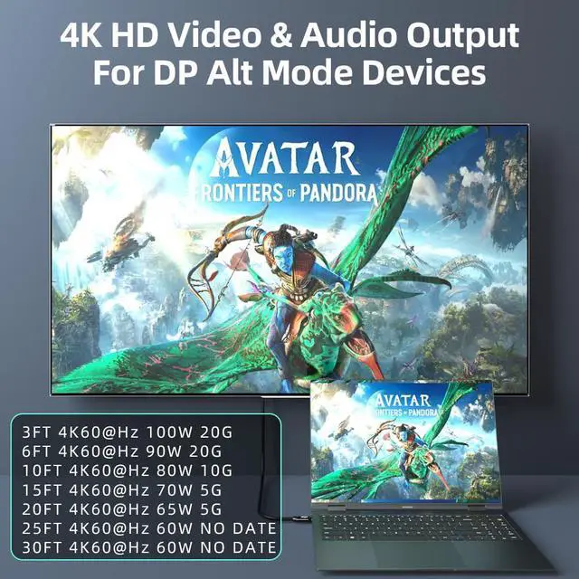 4K UHD Video Output: USB 3.1 C to C cable provides full 4K @ 60Hz video resolution and works with most USB-C monitors. Offers 4K video output function from USB-C laptops, smartphones, laptops to USB-C monitors.