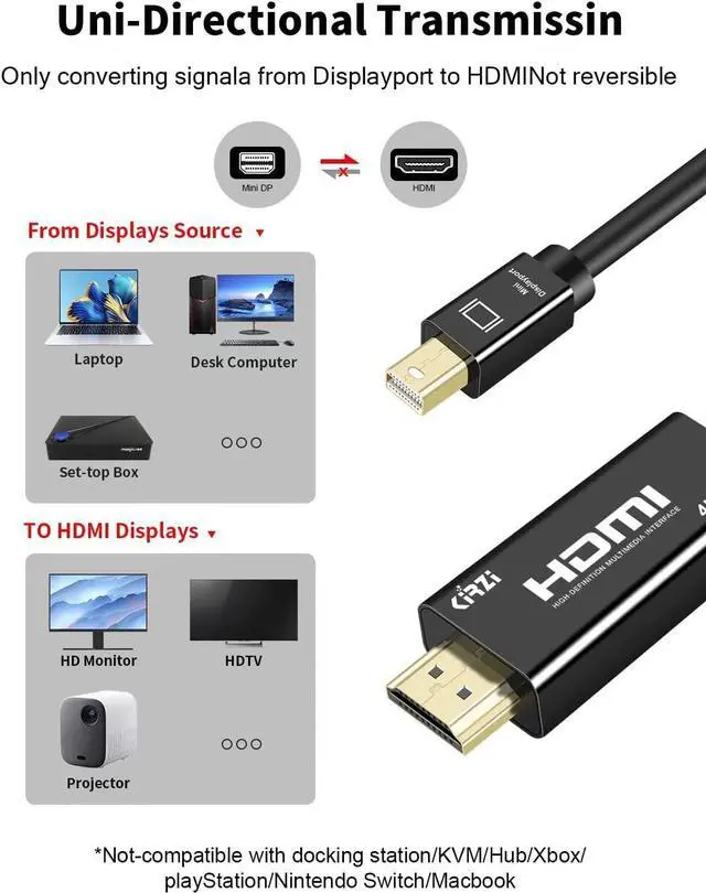 Choose Kirzi Mini DisplayPort (DP, DP++, DisplayPort++)to HDMI 4K Adapter, enjoy unconditional Lifetime Warranty and 24/7 customer service. If you meet any question, please contact us, we will fix your issue within 24 hours.