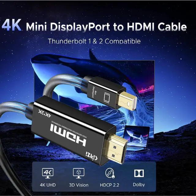 Wide Compatibility: 4K Mini DisplayPort(Thunderbolt) to HDMI Cable is ideal for laptop, tablet, monitor, projector, Surface Dock, TV. Compatible with MacBook Air, MacBook Pro, iMac, Mac Pro, Microsoft Surface Pro, Surface Studio 1 / Book 1 / Dock 1 and more devices with Mini DP interfaces.