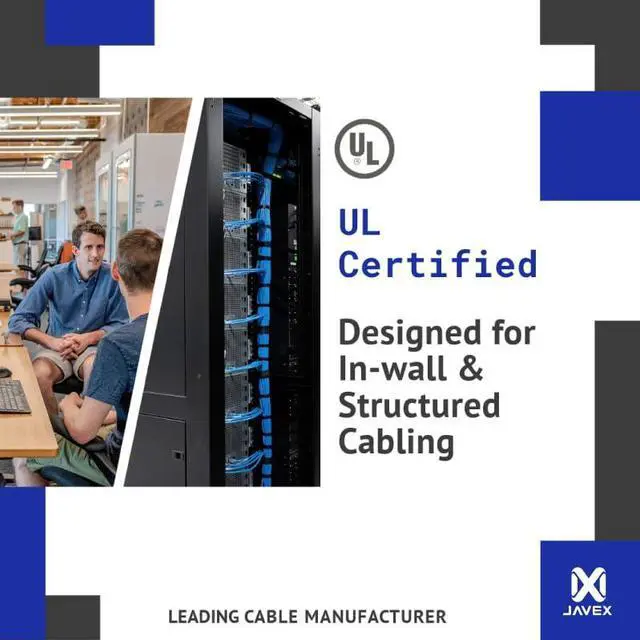 • [High-speed Transmission] JAVEX premium Cat6 23AWG CM rated network cables meet upto-600Mhz performance to support data transmission and comply with IEEE 802.3af (PoE) / IEEE 802.3at (PoE+) in structure cabling for horizontal and building backbone