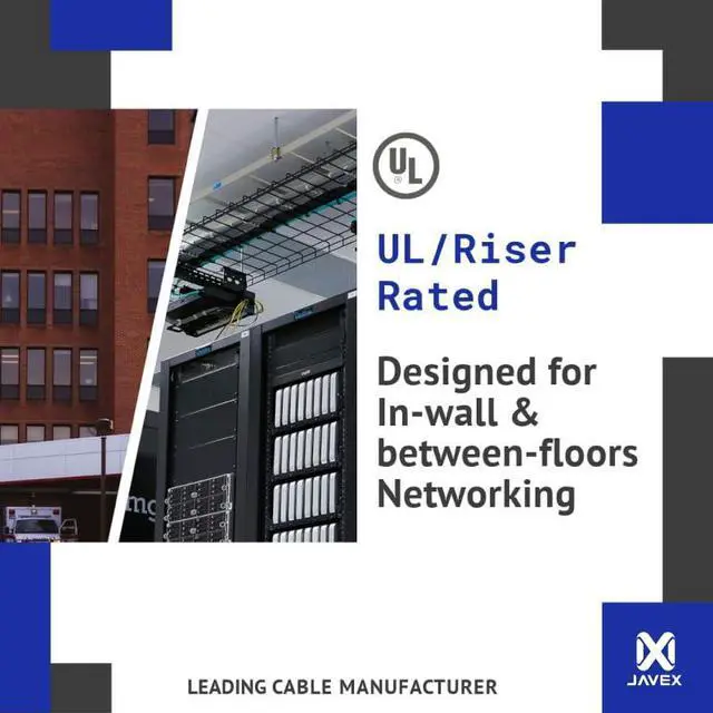 [Indoor Riser Rated ] : The UL Riser rated jacket is designed for in-wall and Indoor between floors, and non-plenum spaces and comply with the vertical installations test with mild flame retardant