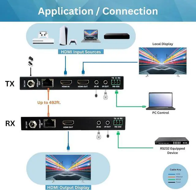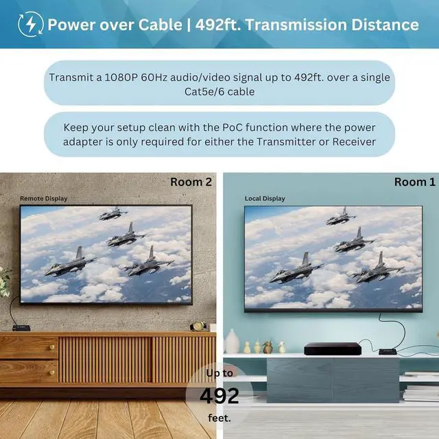 EXTEND YOUR HDMI SIGNAL OVER ETHERNET Extend your 1080P HDMI signal up to 500 feet (150 meters) over Cat5e/6 UTP cable using the latest HDBaseT transmission technology.